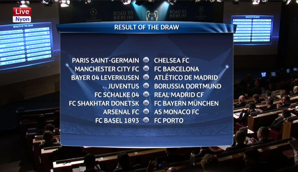 FlamedCity followed the UCL round of 16 draws live and as seen above is the just concluded draws .. Hope your club got lucky